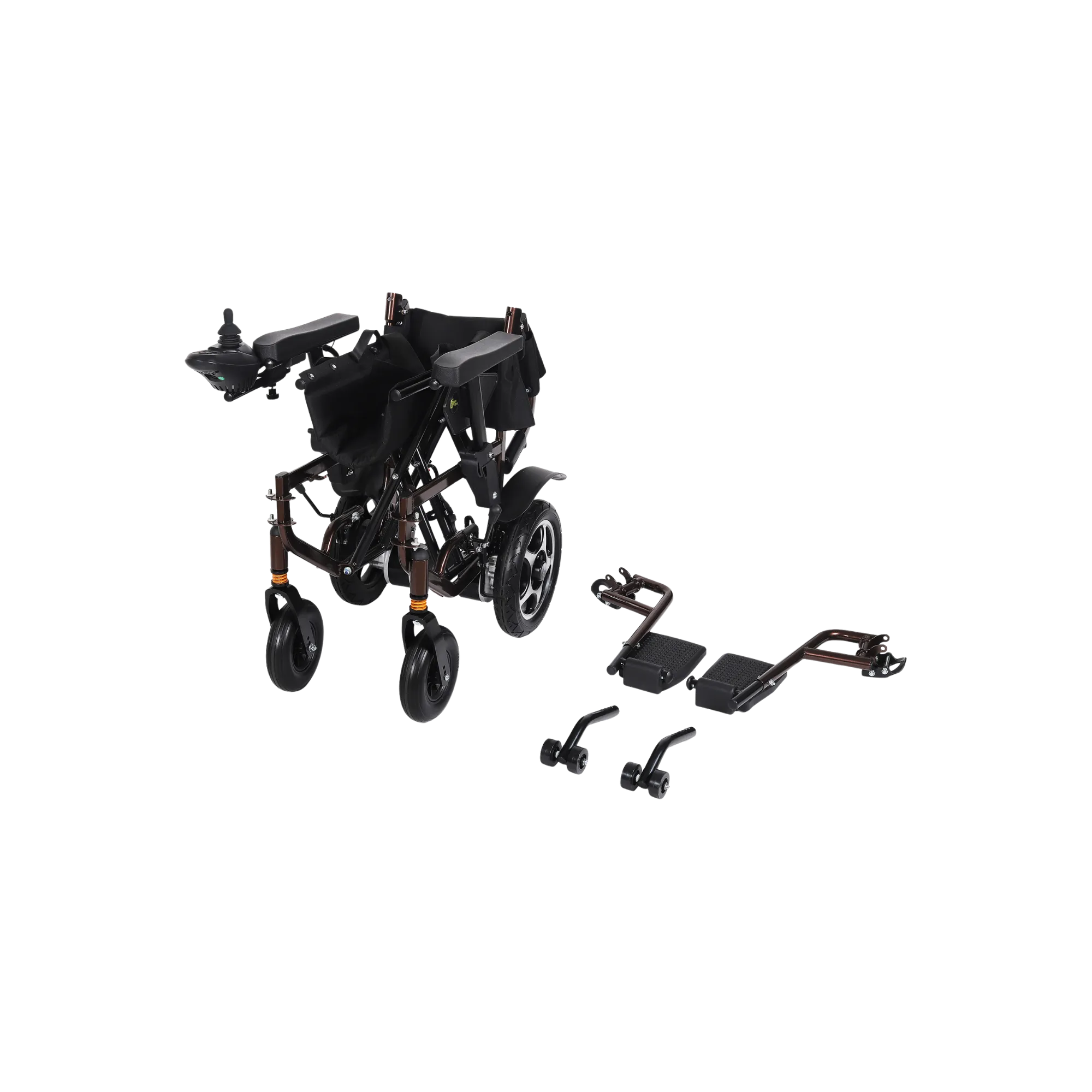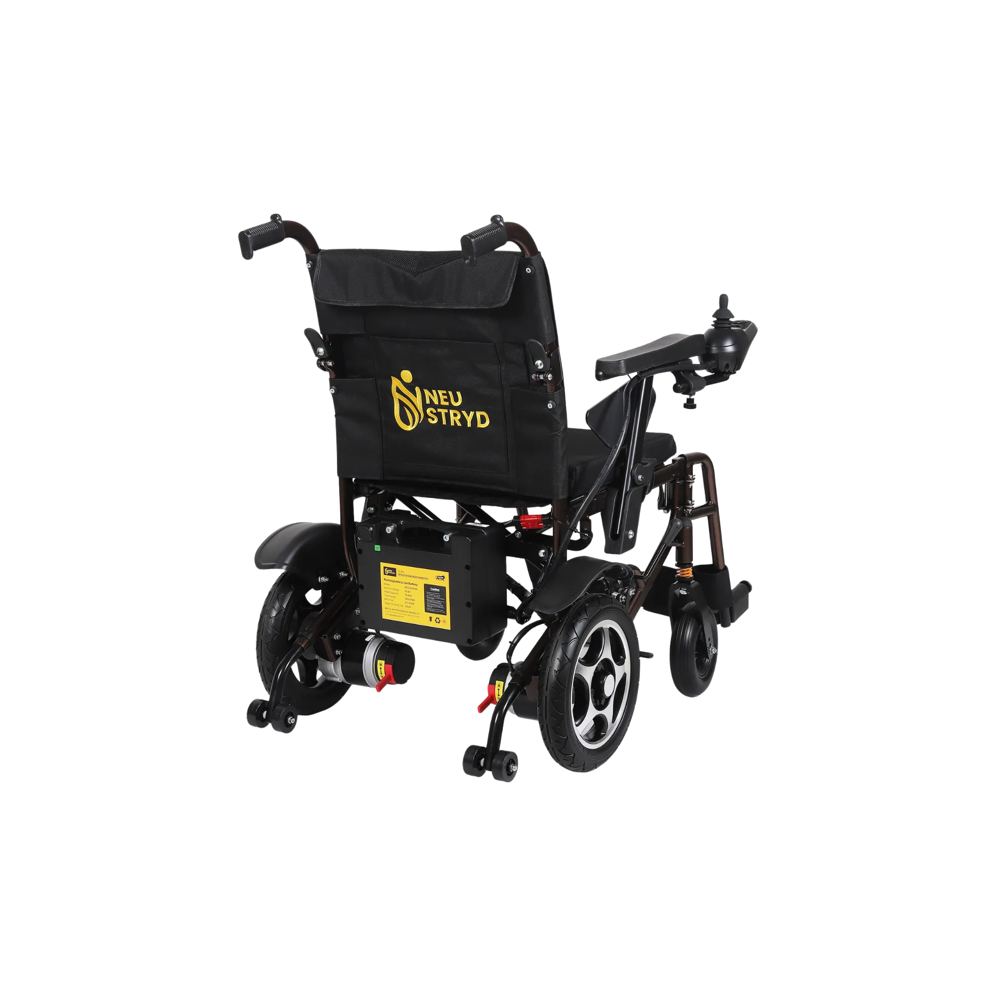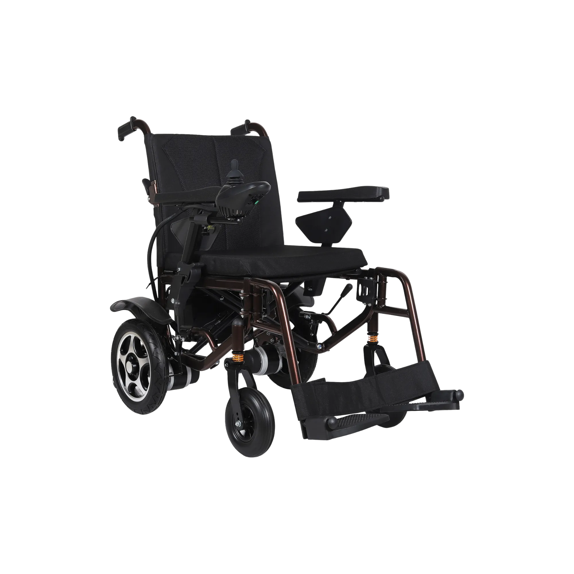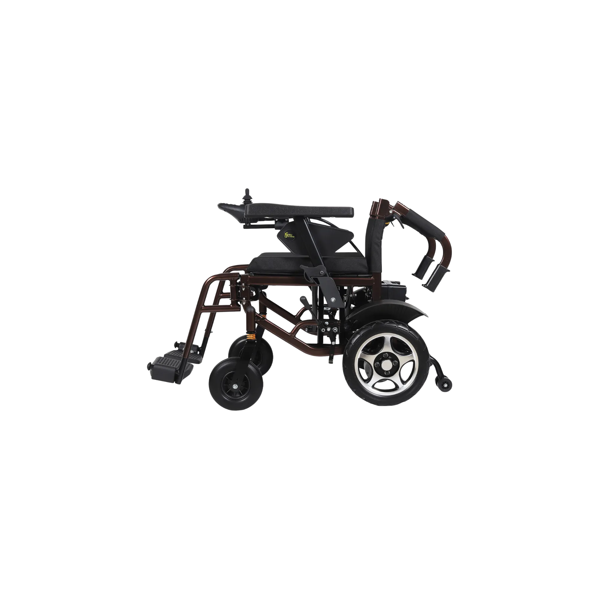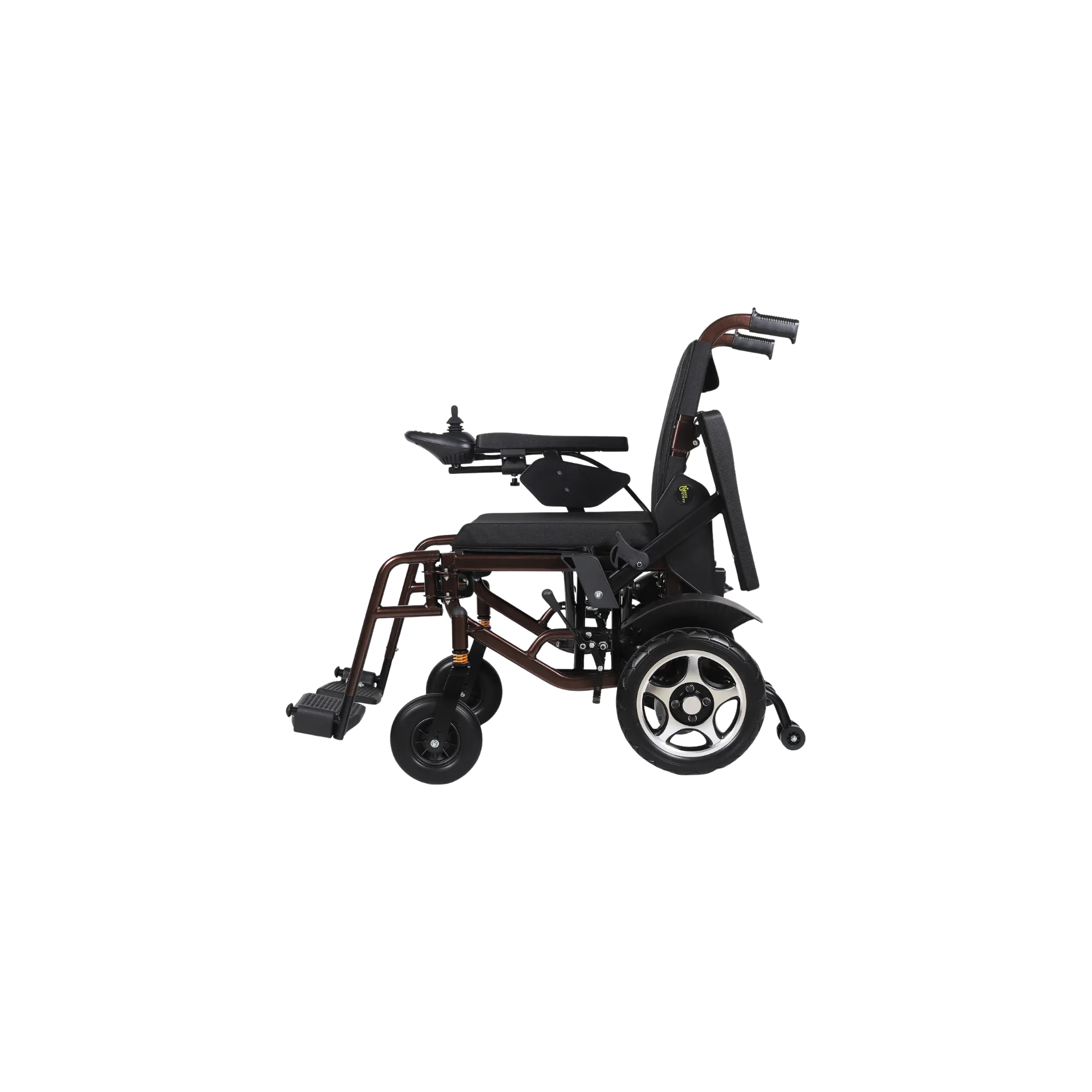 Carbon Steel Elliptical Frame | Angle Back Rest | Solid Front tyres with Shock Absorbers | Flip up Arm rest | Electromagnetic brakes (EMB’s) | Lithium Ion Battery
