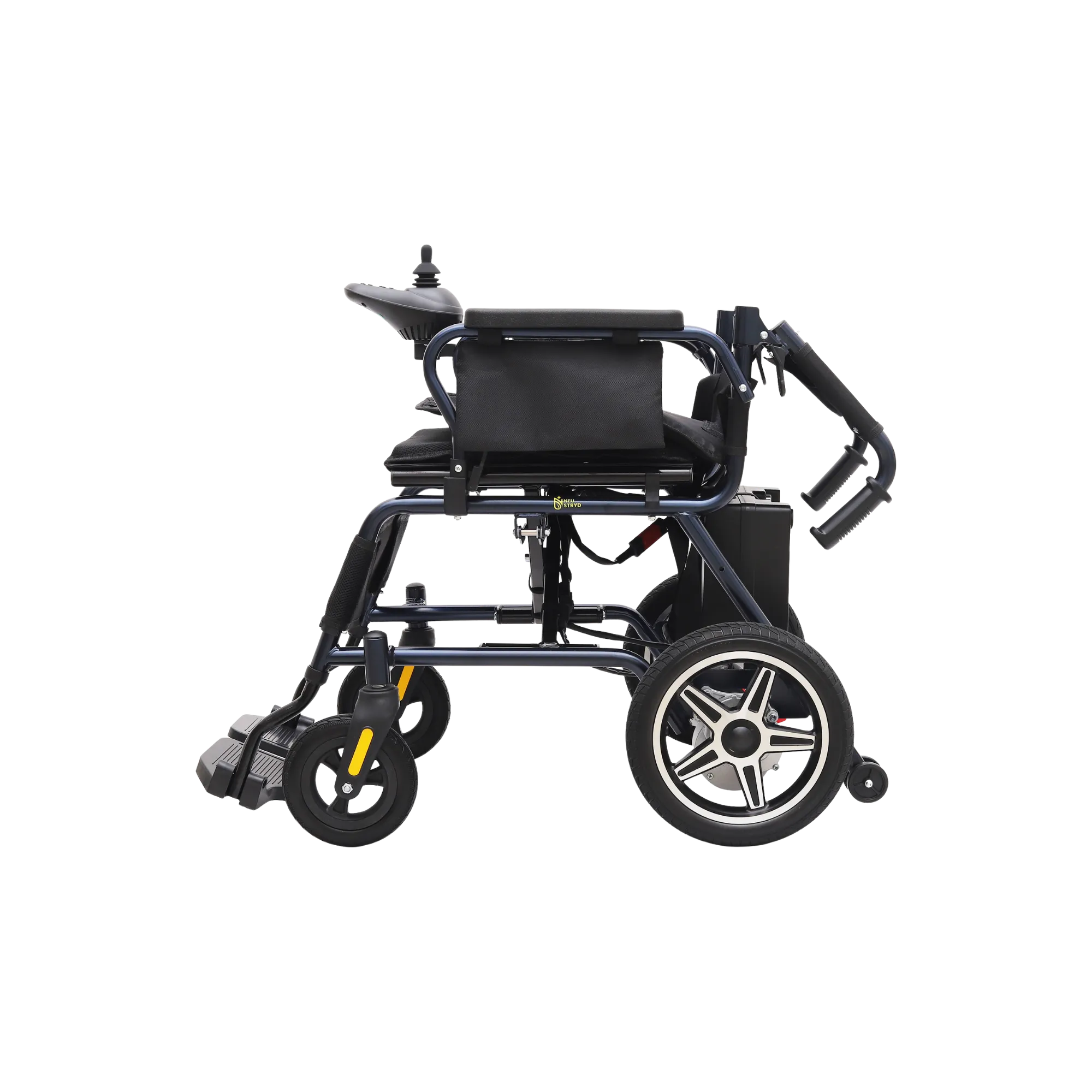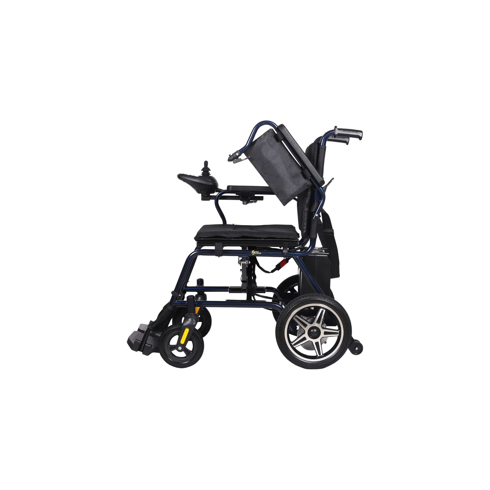 E‑Stryd Eco is compact, foldable and light weight carbon Steel Electric wheelchair designed for everyday comfort. E-Stryd Eco comes with 11 inch Aluminium rear wheel offering additional Strength on outdoor and indoor surface. E-Stryd Eco comes in Two options Lead Acid Battery with Electric Brakes (ESE001-A) / Lithium-lon battery with Electromagnetic Brakes (ESE001-B).
