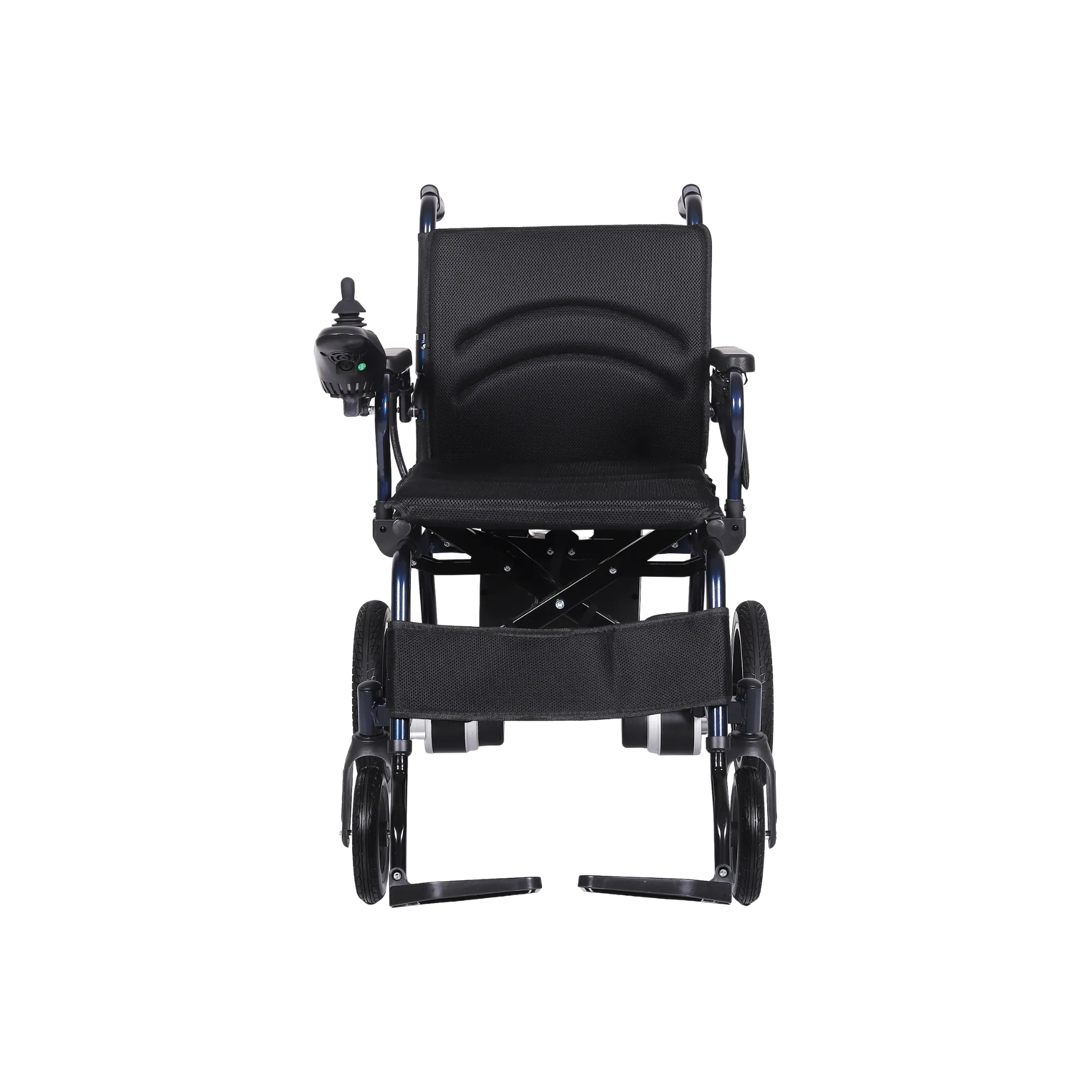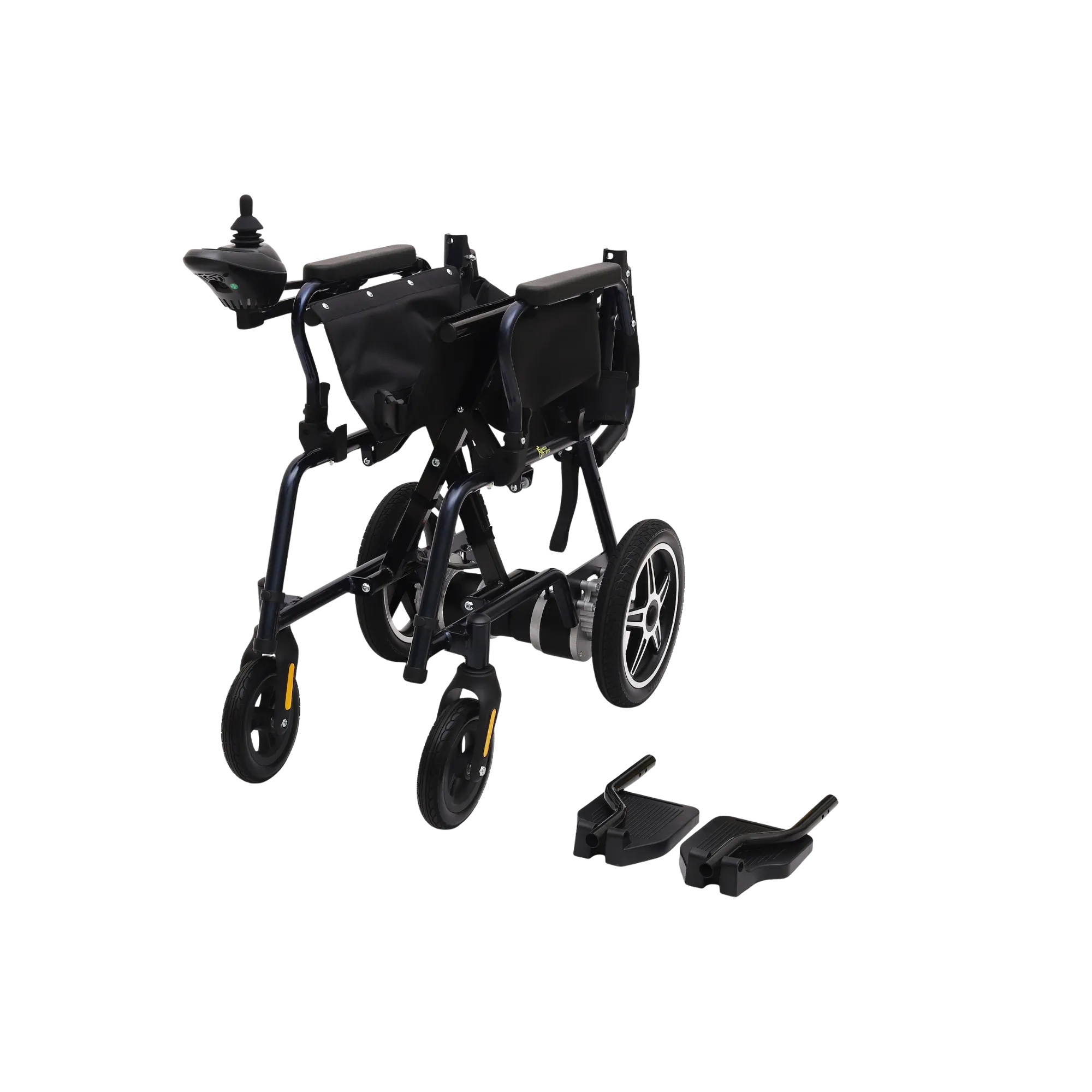 Compact Light weight | Aluminium Rim 11 inch Rear Wheels | Flip up Arm rest | Height adjustable and removable Leg rest | Joystick Controller | Dual Motors